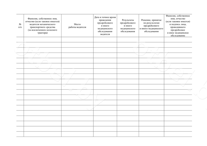 Журнал предрейсовых и иных медицинских обследований водителей механических транспортных средств (за исключением колесных тракторов)