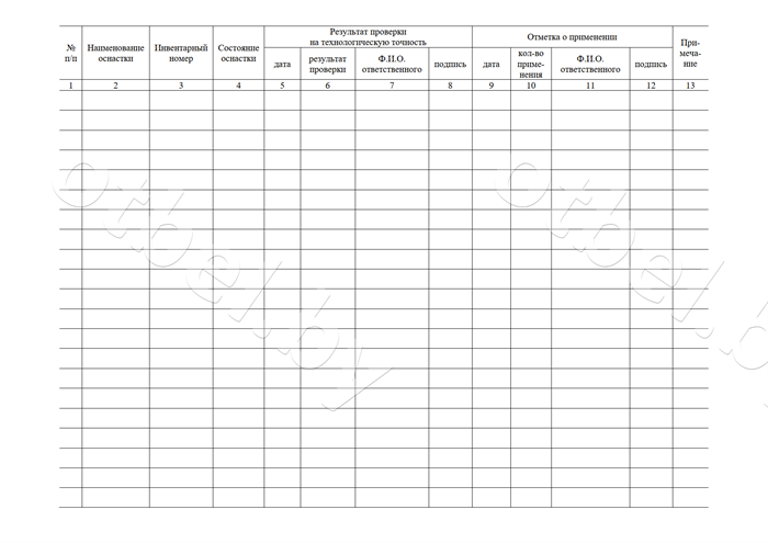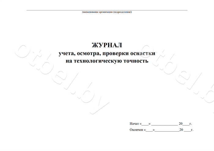 ЖУРНАЛ учета, осмотра, проверки оснастки на технологическую точность