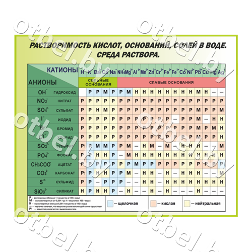 Растворимость кислот, оснований, солей в воде и среда раствора (вариант 1)