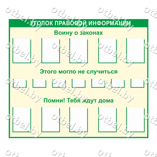 Стенд «Воину о законах» с карманами А4 вертик. (10 шт.) и карманами нестандартных форматов