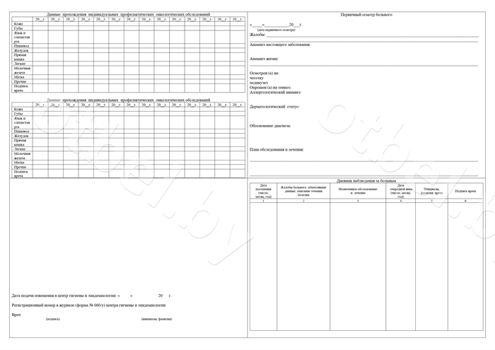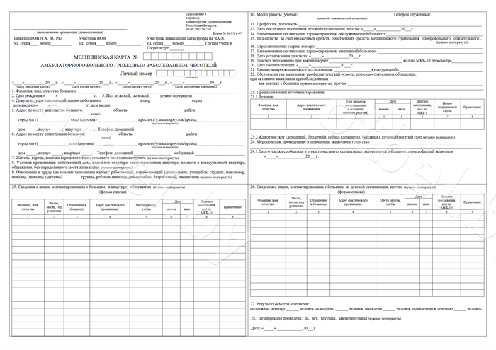 Медицинская карта амбулаторного больного грибковым заболеванием, чесоткой
