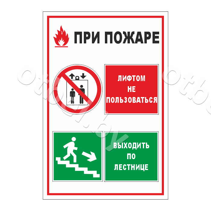 При пожаре. Лифтом не пользоваться. Выходить по лестнице