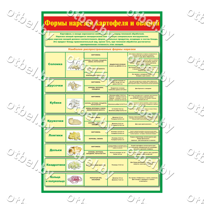 Столовая воинской части. Формы нарезки картофеля и овощей