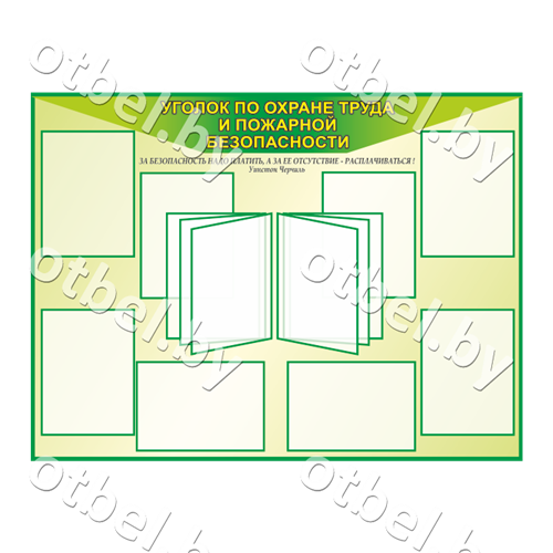 Стенд «Уголок по охране труда и пожарной безопасности» на зеленом фоне