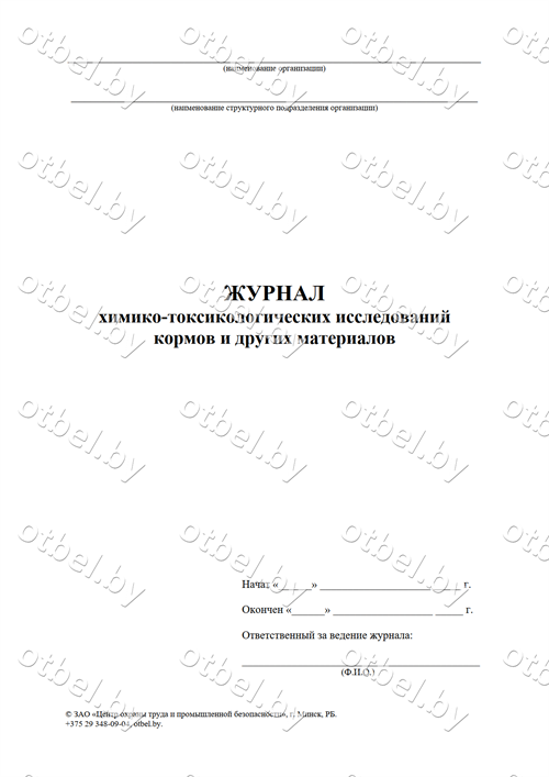 Журнал химико-токсикологических исследований кормов и других материалов