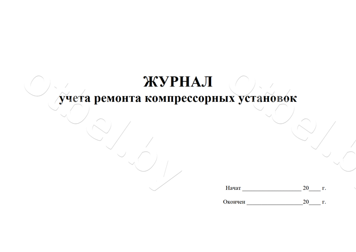 Журнал учета ремонта компрессорных установок (форма 1)