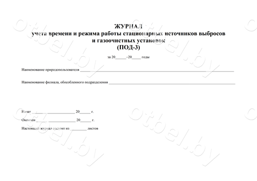 Журнал учета времени и режима работы стационарных источников выбросов и газоочистных установок (ПОД-3)