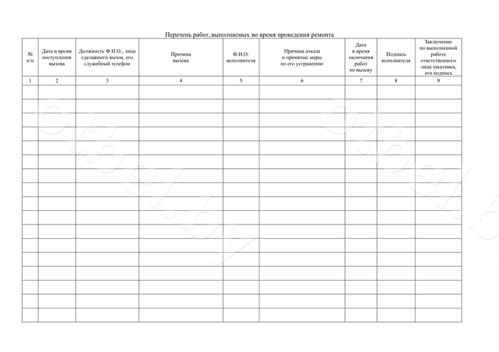 Журнал учета вызовов технических специалистов и регистрации выполненных работ